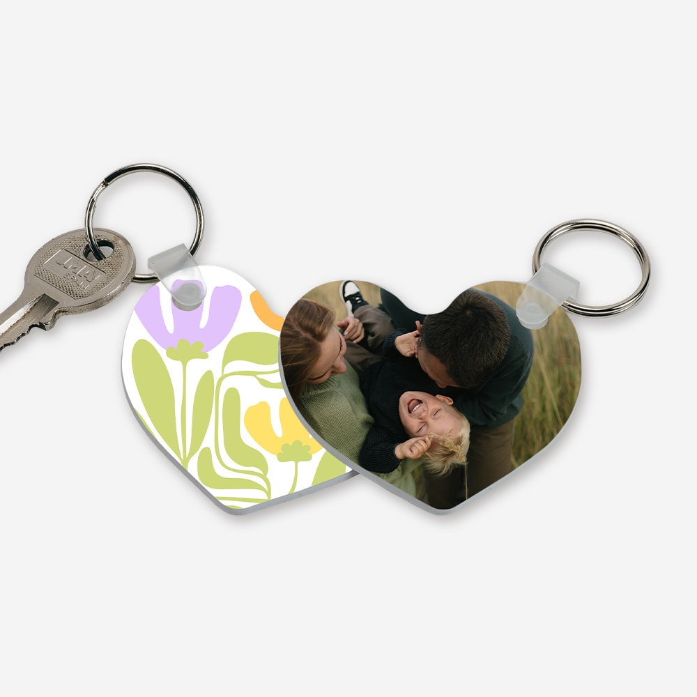 Leva as tuas memórias a passear com um design cheio de movimento. Este porta-chaves mistura curvas orgânicas com pétalas em lilás e amarelo, criando a moldura perfeita para a tua foto favorita. É aquele detalhe com pinta para dar cor ao teu molho de chaves, mantendo tudo leve, fresco e super original.